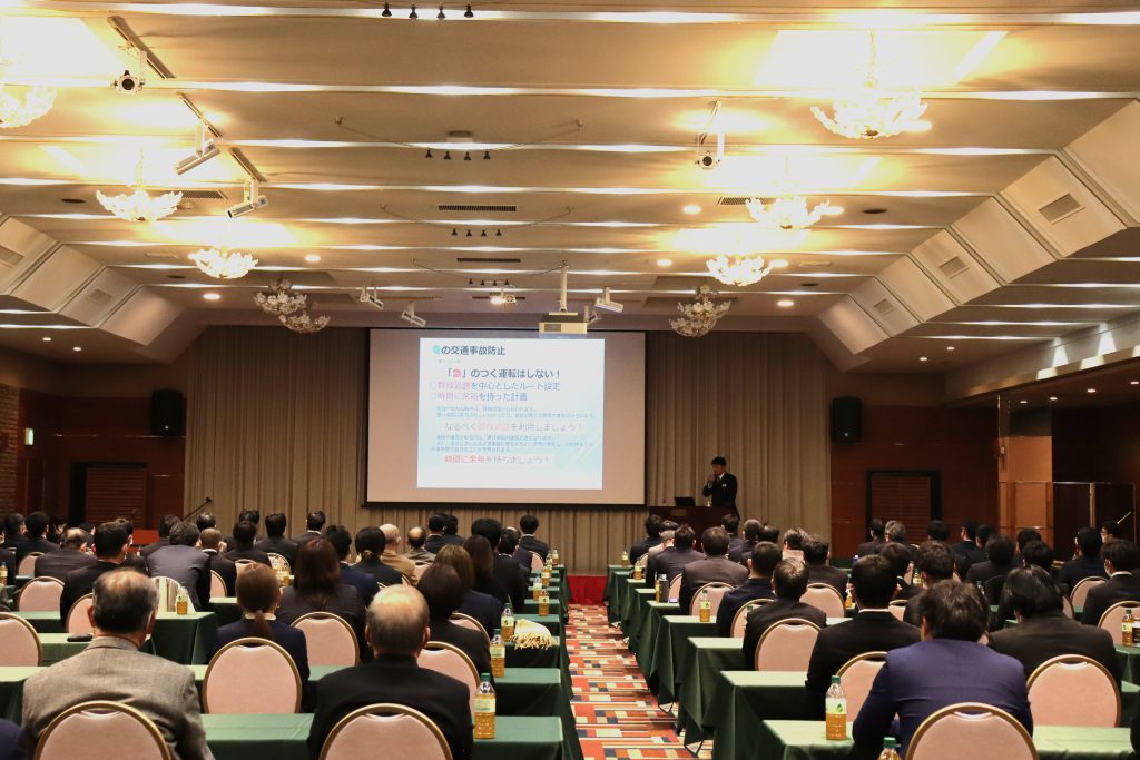 会社の交通安全教育の取り組みによって、事故防止に向けた安全意識の高揚を目指しています。三密を避け、会場分散とWeb(Zoom)にて、全社員が参加しました。
